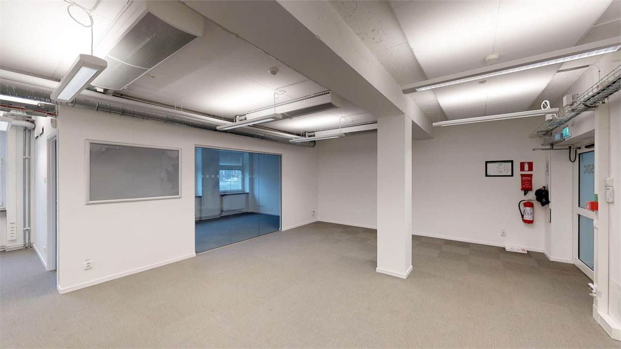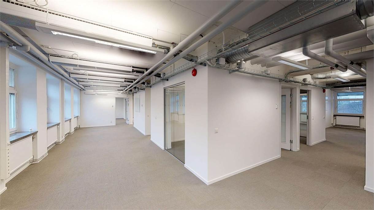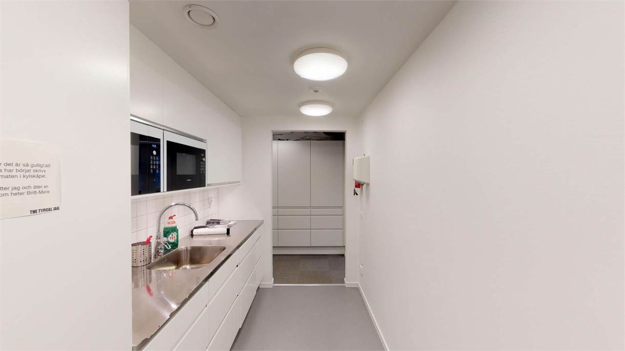 Vy över korridor och mötesrum