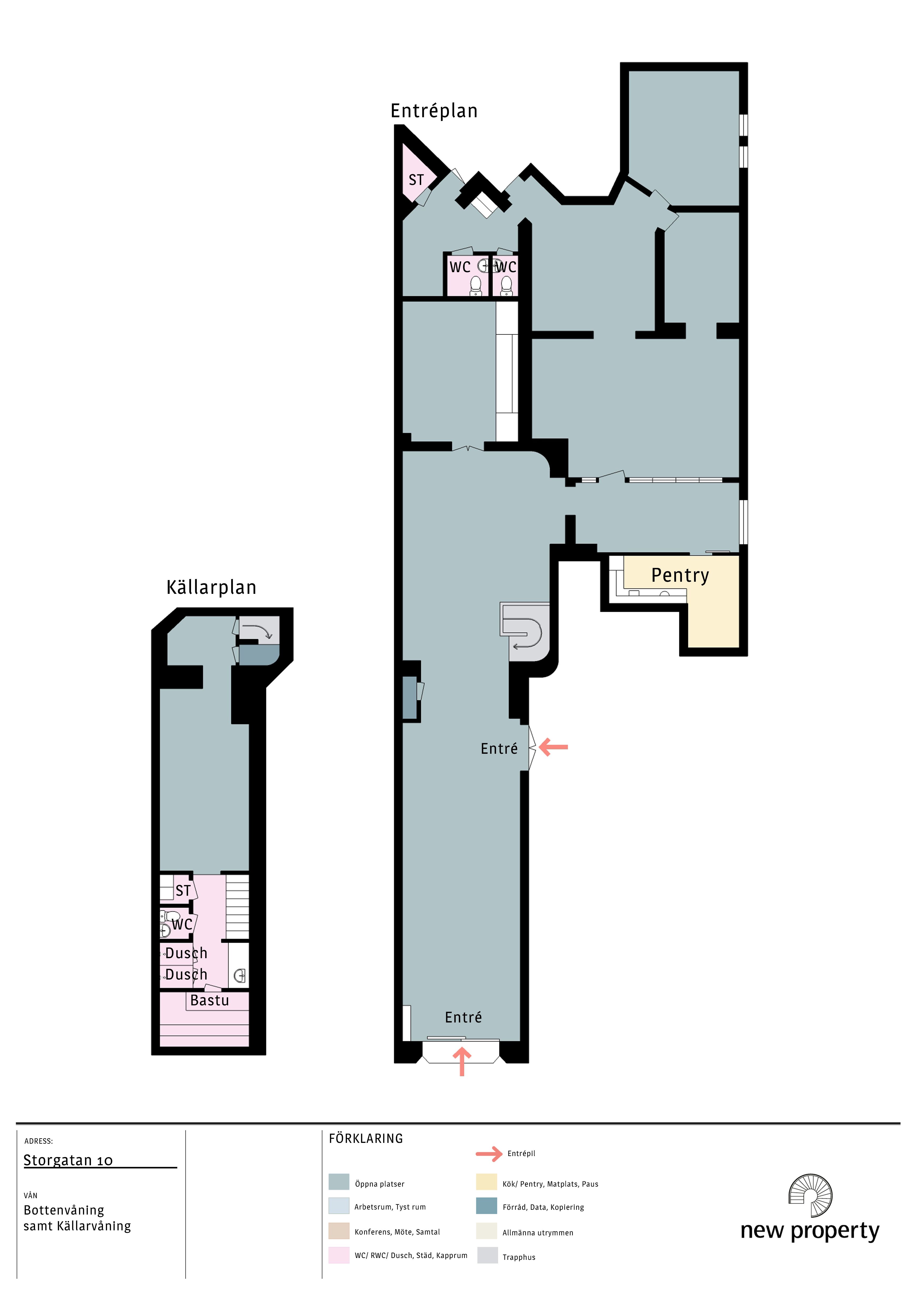I denna vackra fastighet finns nu en mycket fin och ovanlig lokal ledig i entréplanet plus en del i källare. Entréplanet är ca 342 kvm och källarplanet ca 66 kvm. Lokalen har både egen entré från gatan entré via trapphuset. Stort skyltfönster mot Storgatan. I entréplanet är det högt i tak och gott om ljusinsläpp via takfönster och sidofönster. Påkostad inredning och belysning. Lokalen har en stor öppen yta vid entrén som kan fungera som öppet landskap eller kan användas som showroom eller butiksdel. I den bakre delen av lokalen finns två stora rymliga konferensrum, ett mindre arbetsrum och en öppen del för arbetsplatser. Här finns också ett trevligt genomgångsrum som idag fungerar som bibliotek. Pentry med gott om pausplatser. Källardelen är ca 66 kvm och fungerar idag som gym och här finns duschar, wc och bastu. Mycket fin och trivsam lokal på bra läge mittemot Näringslivets hus. Mysig innergård för kaffe eller lunch. Tillträde enligt överenskommelse, lokalen är tom.