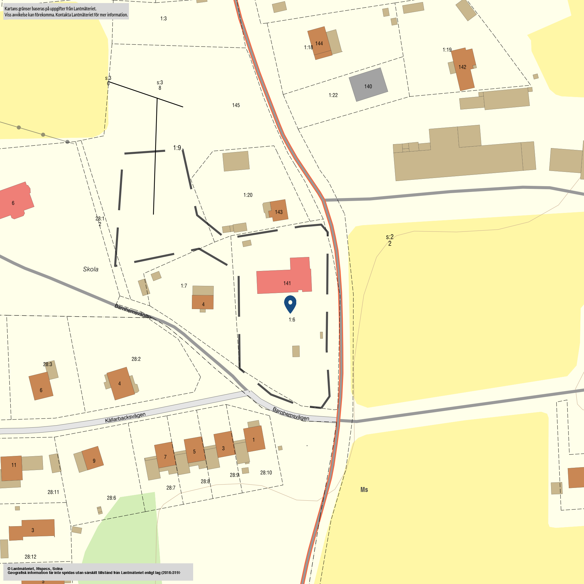 Beskrivning: 2-plans byggnad med källare under mindre del. Stomme av trä. Träpanel på fasad, Tvåglasfönster. Betongpannor på tak. I byggnaden finns lektionssalar, bibliotek och lärarrum Uppvärmning, kylning och ventilation Vattenburen värme från bergvärmepump kompletterad med elpanna. Från och tillluftsventilation med värmeåtervinning Vatten och avloppstyp Kommunalt VA TV/internet Fiber finns indreget mej ej inkopplat