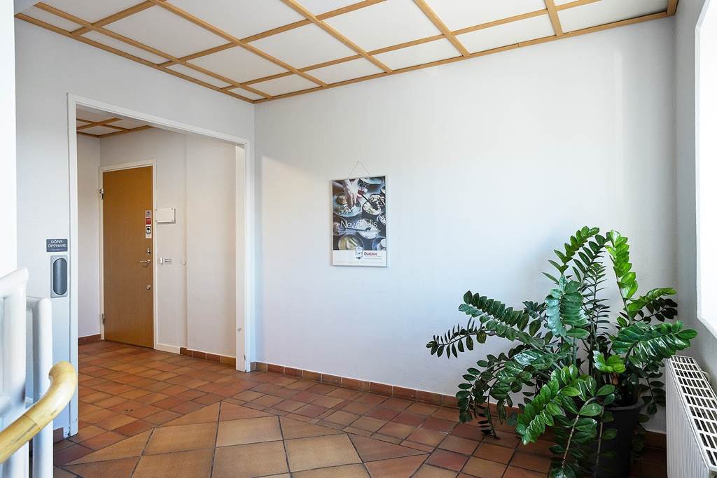 I trapphuset utanför entrén till lokalen