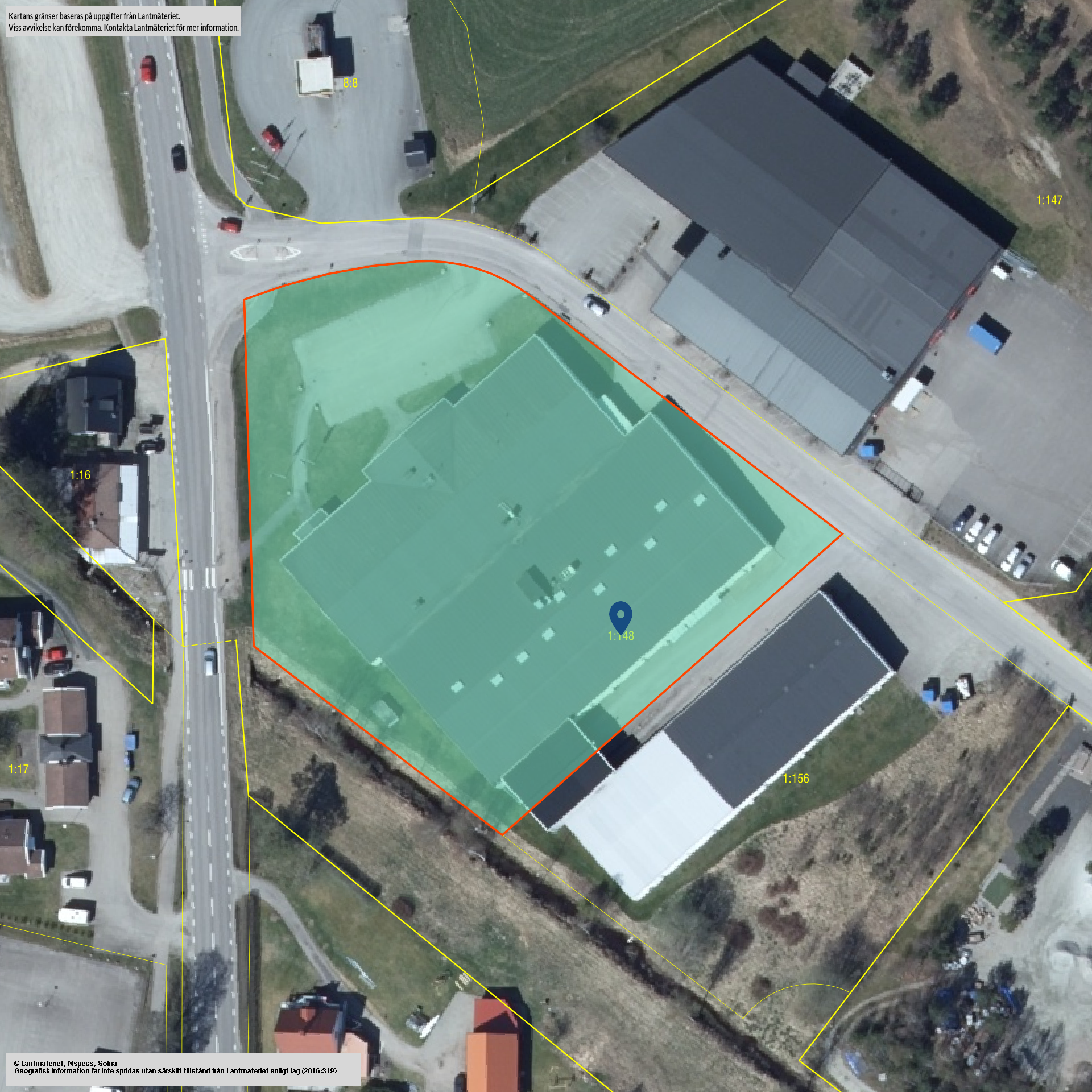 Beskrivning: Uppmätt yta är 3258 kvm. Taxerad yta om 4566 kvm är felaktig.