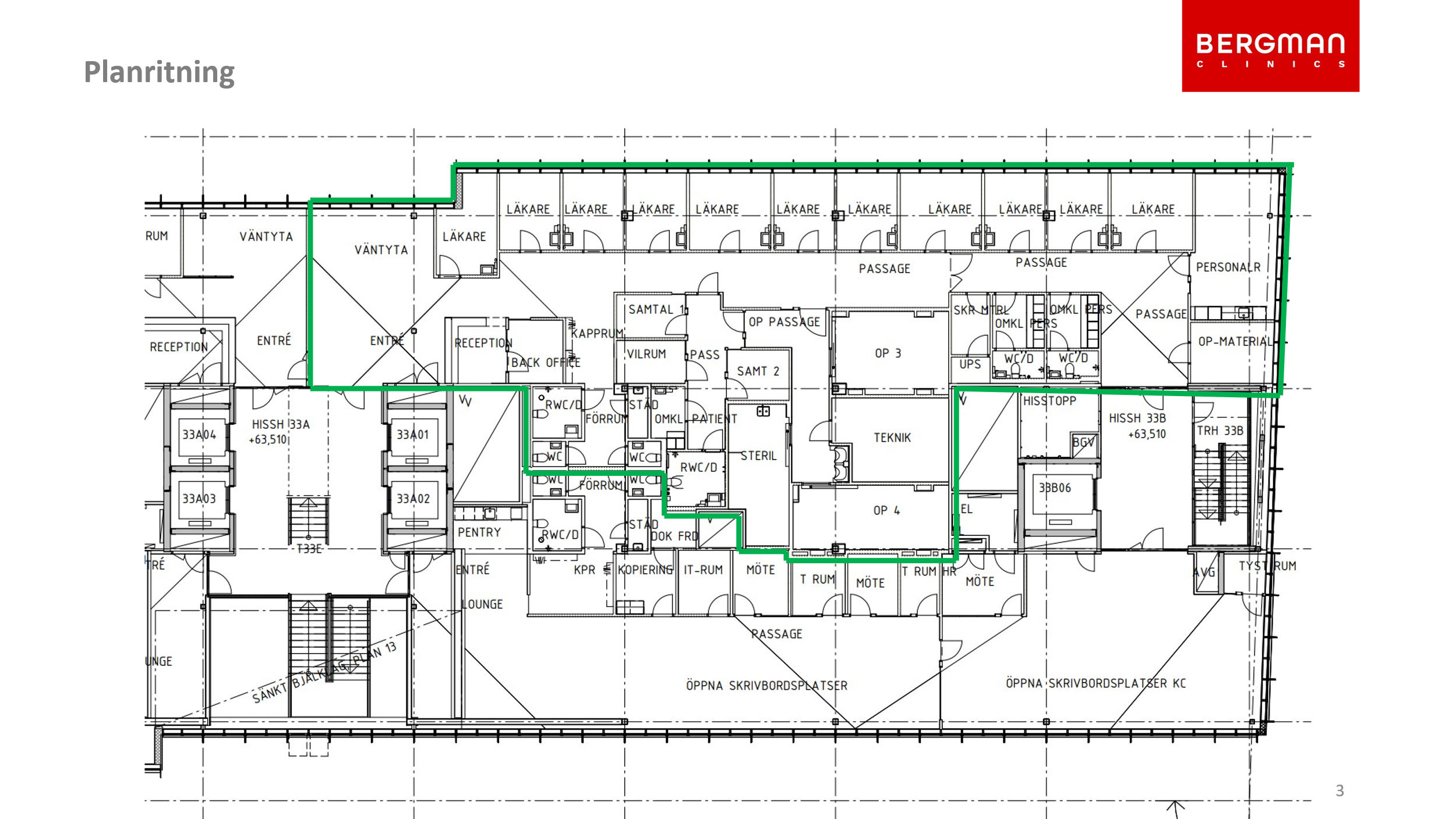 Lokalen ligger högst upp i huset och har enormt fin utsikt över Stockholm. Lokalen används idag som ögonklinik och har flertalet inredda rum med tillhörande utrustning. Stor entré med reception och tillhörande tjänster. Möjlighet att överta befintligt hyresavtal på ca: 4 år alternativt teckna nytt avtal med hyresvärden.